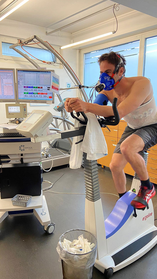 En collaboration avec la clinique universitaire zurichoise Balgrist, j’ai effectué un bilan au début de mon projet « Mini-Transat 2023 » pour évaluer ma condition physique de départ. La priorité est d’acquérir une solide endurance de base afin de rester physiquement en forme même dans des conditions complexes et prolongées. Une stabilité corporelle est cruciale pour compenser les mouvements et les chocs causés par les vagues. Pendant la course, la condition physique tend à diminuer en raison de la privation de sommeil et de la réduction des possibilités de mouvement sur le bateau. Une bonne forme physique permet de maintenir des réserves suffisantes, même dans les phases finales de la course. À Lorient, je m’entraîne en groupe avec deux séances par semaine dédiées à la musculation, la coordination et le cardio, ainsi que deux séances de natation. Avant les courses majeures, je complète mon programme d’entraînement avec un entraîneur privé spécialisé.